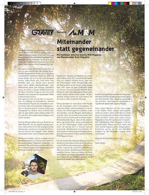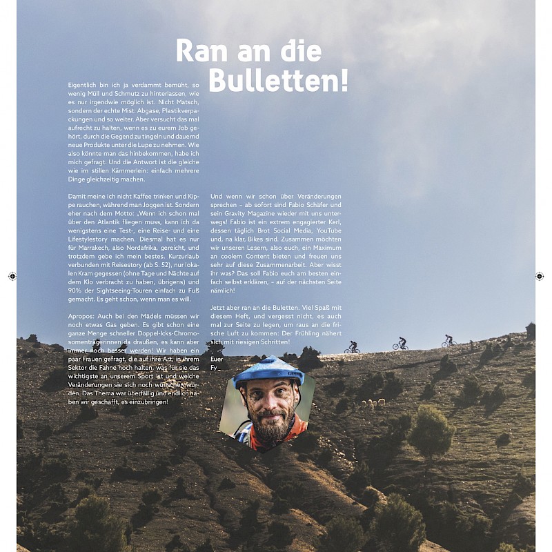 Und wenn wir schon über Veränderungen sprechen – ab sofort sind Fabio Schäfer und sein Gravity Magazine wieder mit uns unterwegs! Fabio ist ein extrem engagierter Kerl, dessen täglich Brot Social Media, YouTube und, na klar, Bikes sind. Zusammen möchten wir unseren Lesern, also euch, ein Maximum an coolem Content bieten und freuen uns sehr auf diese Zusammenarbeit. Aber wisst ihr was? Das soll Fabio euch am besten einfach selbst erklären – auf der nächsten Seite nämlich!