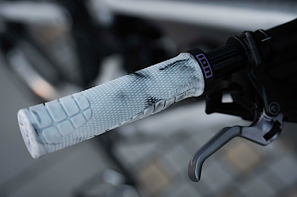 Optisch greift die Limited Edition die progressive Designsprache von ION auf: Schwarz-grau-weiß meliert, kombiniert mit einer lilafarbenen Klemmschelle. Die Farbgebung verbindet die beiden Produkte zu einem abgestimmten MTB-Cockpit und unterstreicht die gemeinsame Handschrift der zwei Marken.